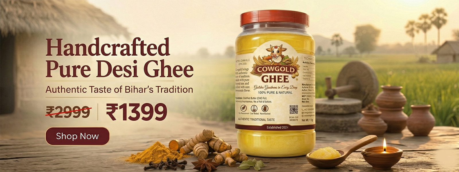 Crafted with care and inspired by Bihar’s rich traditional food culture, CowGold Handcrafted Cow Ghee brings purity, aroma, and authentic taste.